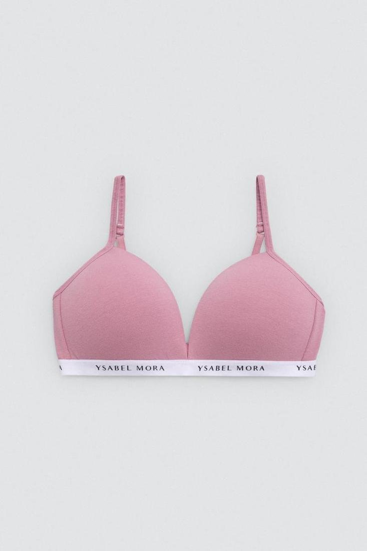 Sutiã juvenil rosa de algodão sem aro.